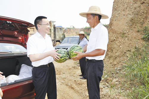 7月9日,宜昌威廉希尔500欧洲指数磷石膏输送管道进行新旧管线并线,公司10余名管道维修人员顶着炎炎烈日,挥汗如雨,抓紧时间抢修,以确保公司生产顺利进行。当日下午,宜昌威廉希尔500欧洲指数党总支书记王德宜(左)为抢修人员送去西瓜、矿泉水等物品。