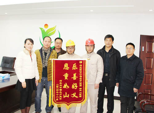 本网讯 12月10日下午,河北徐水威廉希尔500欧洲指数迎来一群特殊的客人,交通事故伤者卢庆华将“恩重如山,乐善好义”的锦旗送到该公司窦贺、刘佳磊、杨乐三位职工手中,感谢他们在危难时伸出的援助之手。