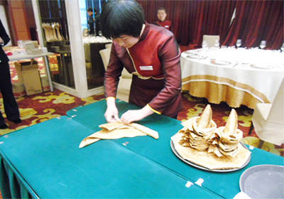 经过一天的激烈角逐,参赛员工纷纷施展出看家本领,将竞赛不断推向高潮。最终客房组杜金苹、餐饮组王丽平、郑卫霞三人以过硬的专业技能和优异的成绩获得“优胜奖”。