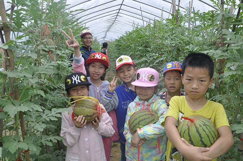孩子们捧着采摘的西瓜喜笑颜开