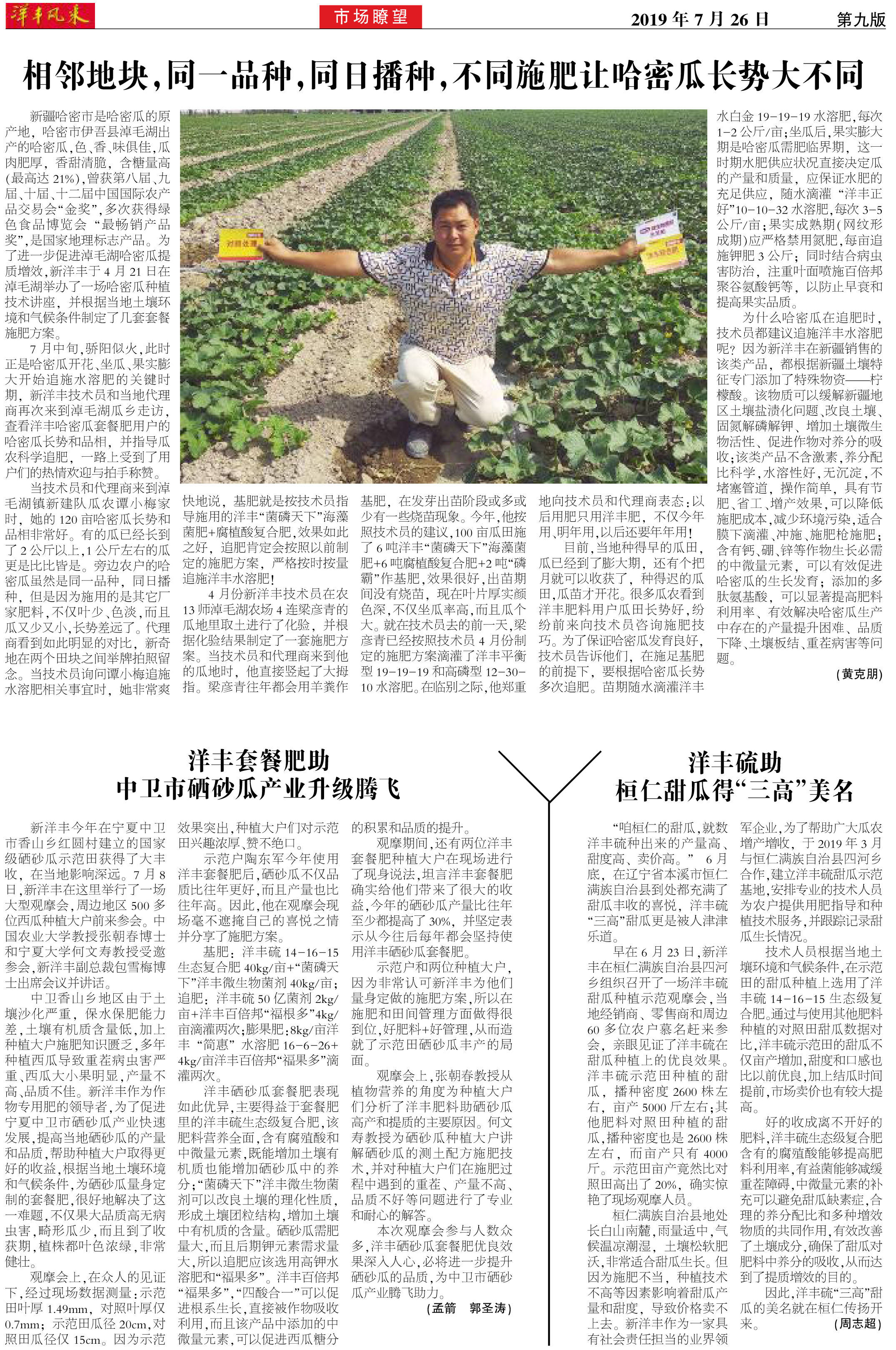 洋丰套餐肥助中卫市硒砂瓜产业升级腾飞