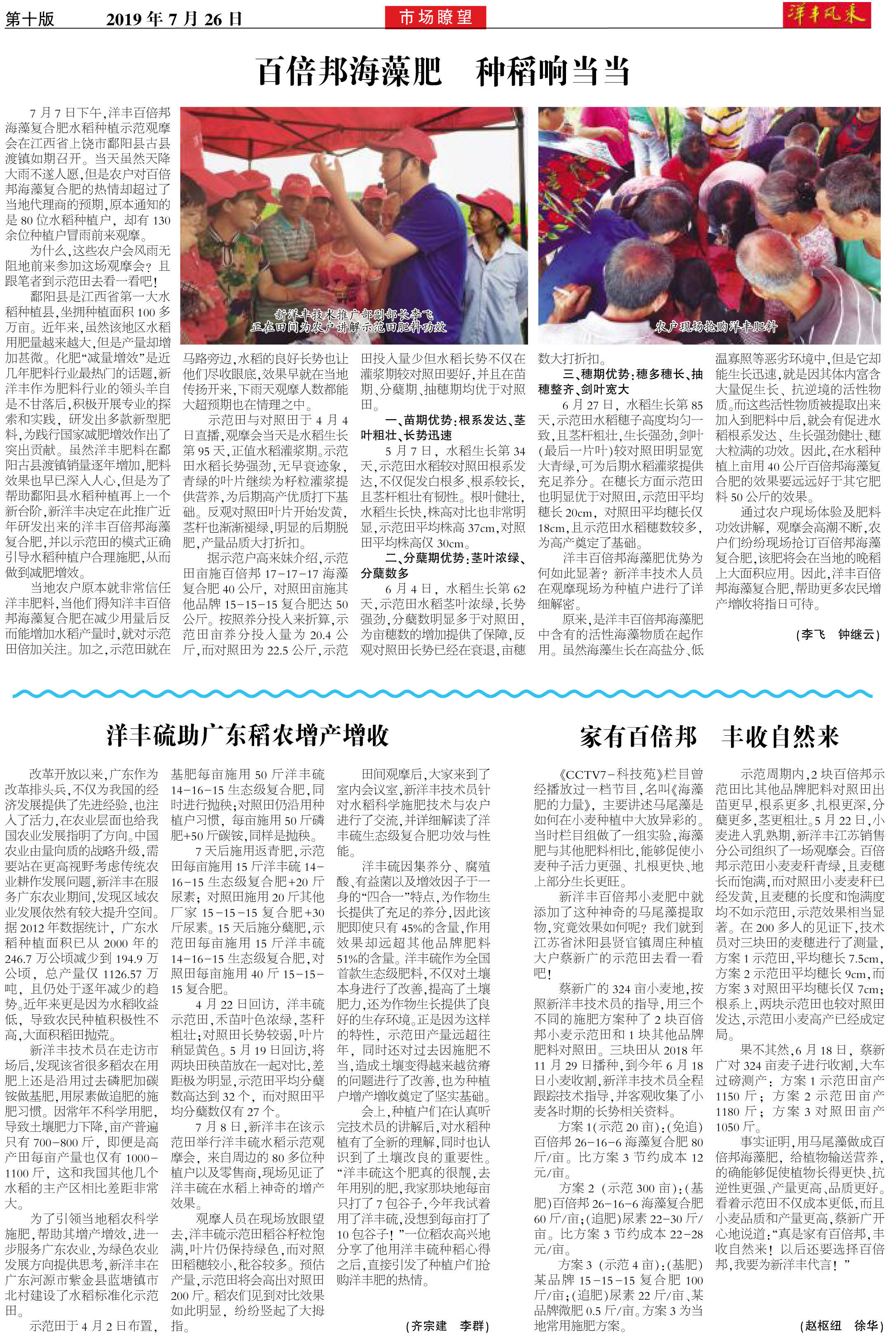 洋丰硫助广东稻农增产增收