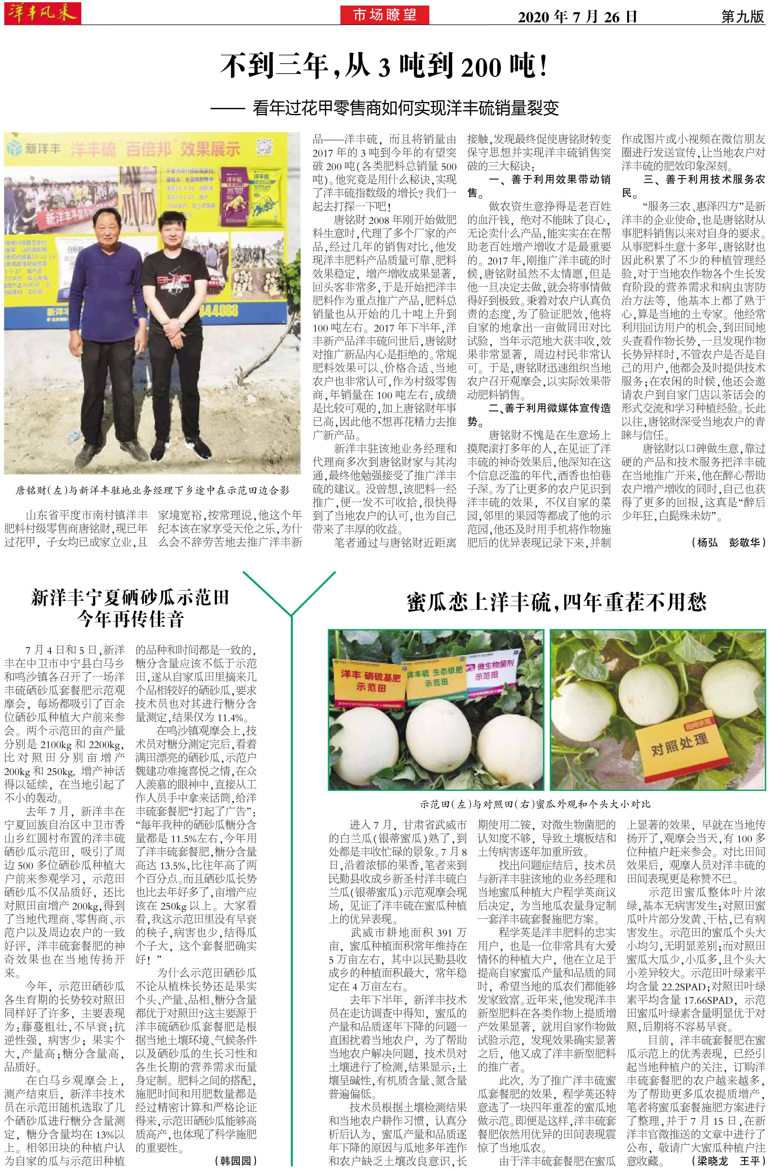不到三年,从3吨到200吨!—— 看年过花甲零售商如何实现洋丰硫销量裂变