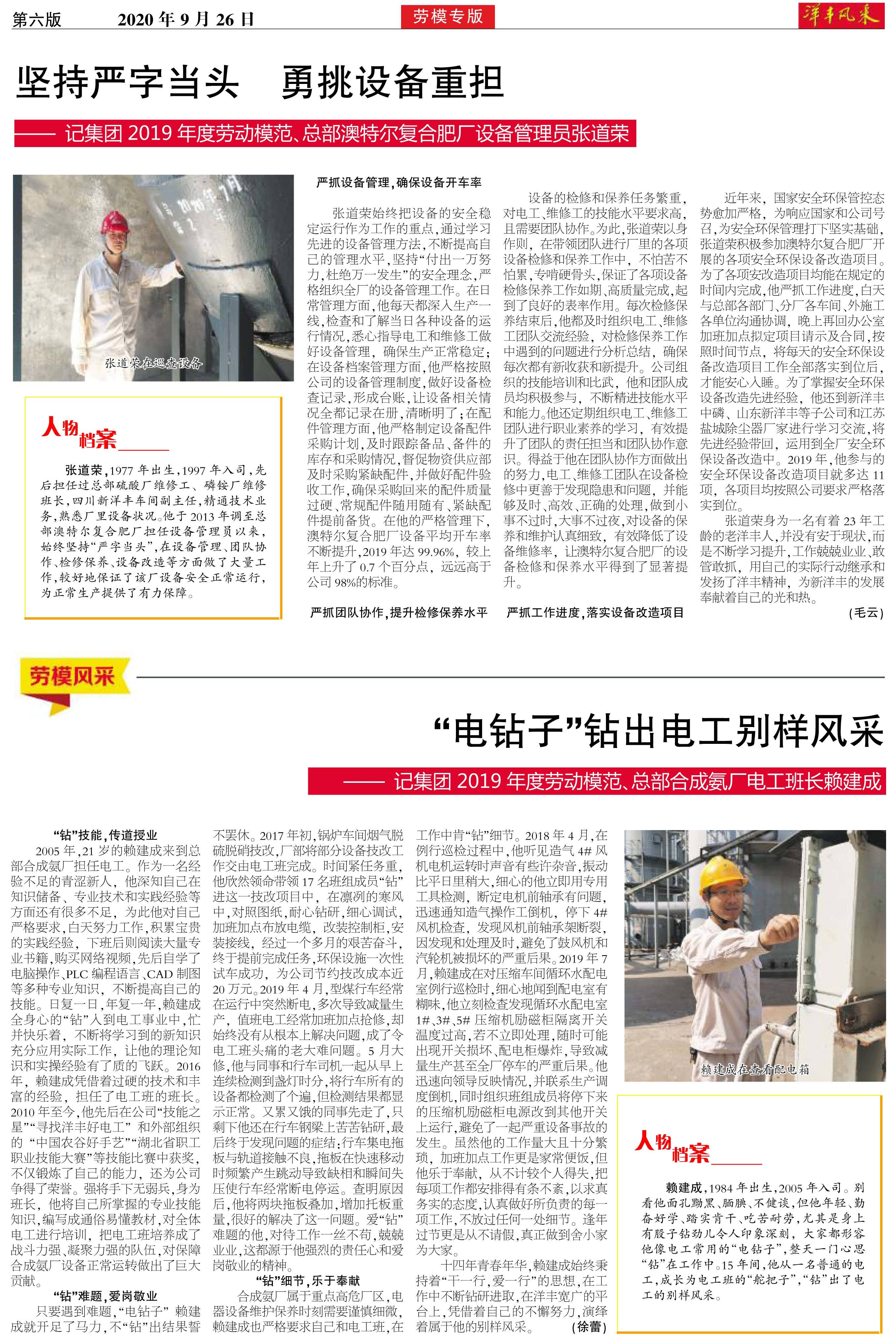 坚持严字当头 勇挑设备重担——记集团2019年度劳动模范、总部澳特尔复合肥厂设备管理员张道荣