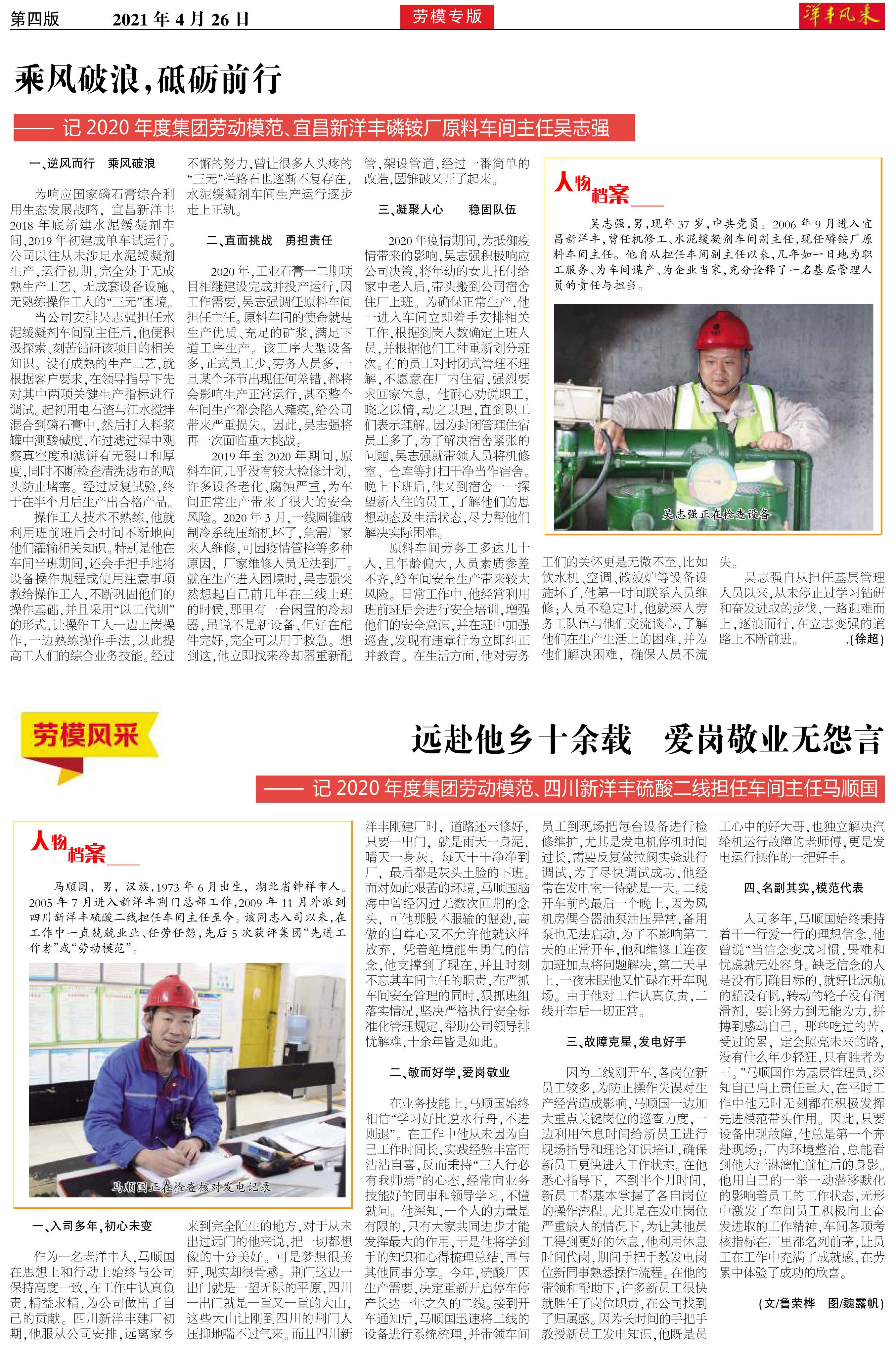 乘风破浪,砥砺前行——记2020年度集团劳动模范、宜昌威廉希尔500欧洲指数磷铵厂原料车间主任吴志强