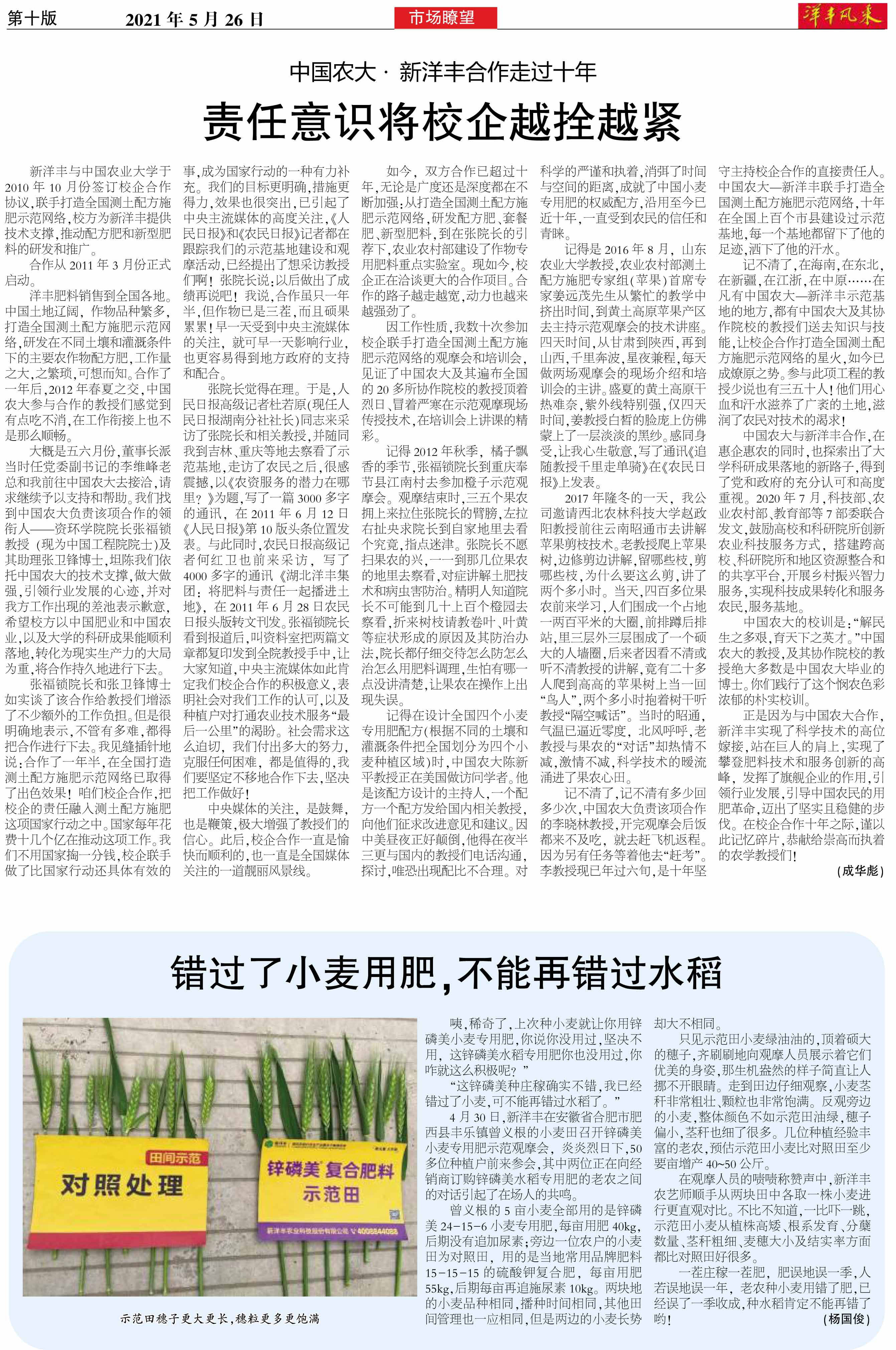 中国农大·威廉希尔500欧洲指数合作走过十年 责任意识将校企越拴越紧
