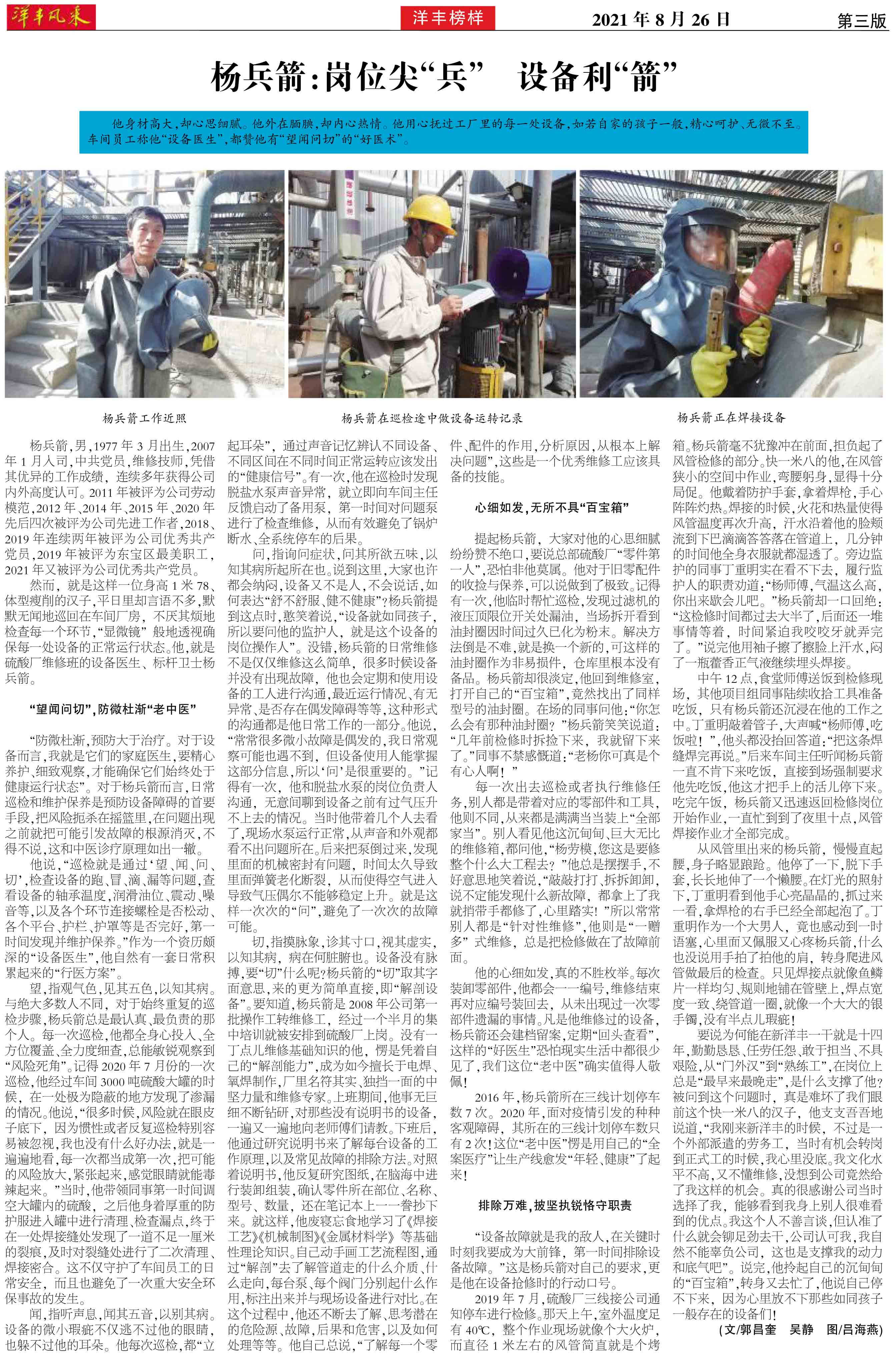 杨兵箭:岗位尖“兵” 设备利“箭”