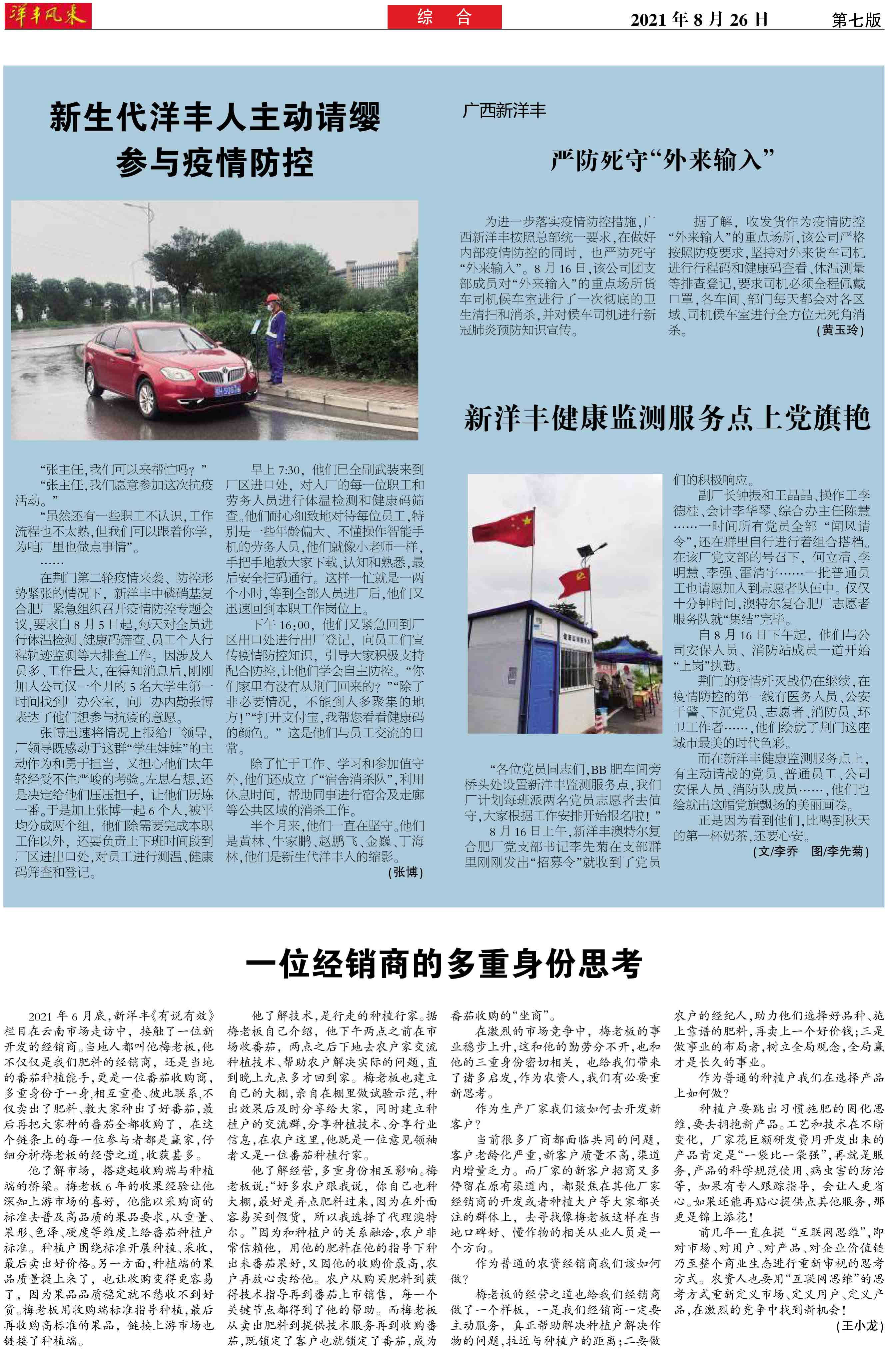 新生代洋丰人主动请缨参与疫情防控