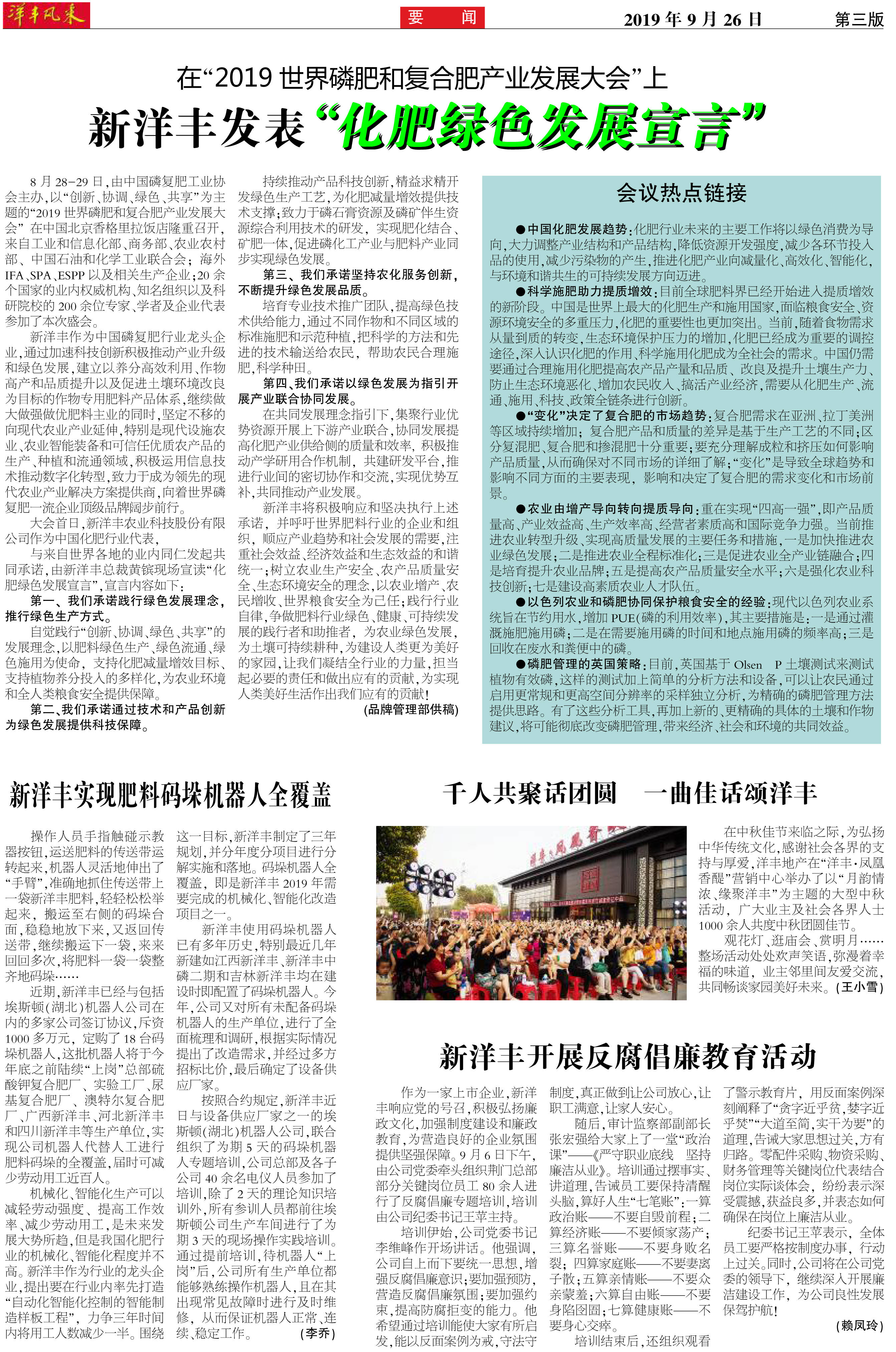 在“2019世界磷肥和复合肥产业发展大会”上 威廉希尔500欧洲指数发表“化肥绿色发展宣言”