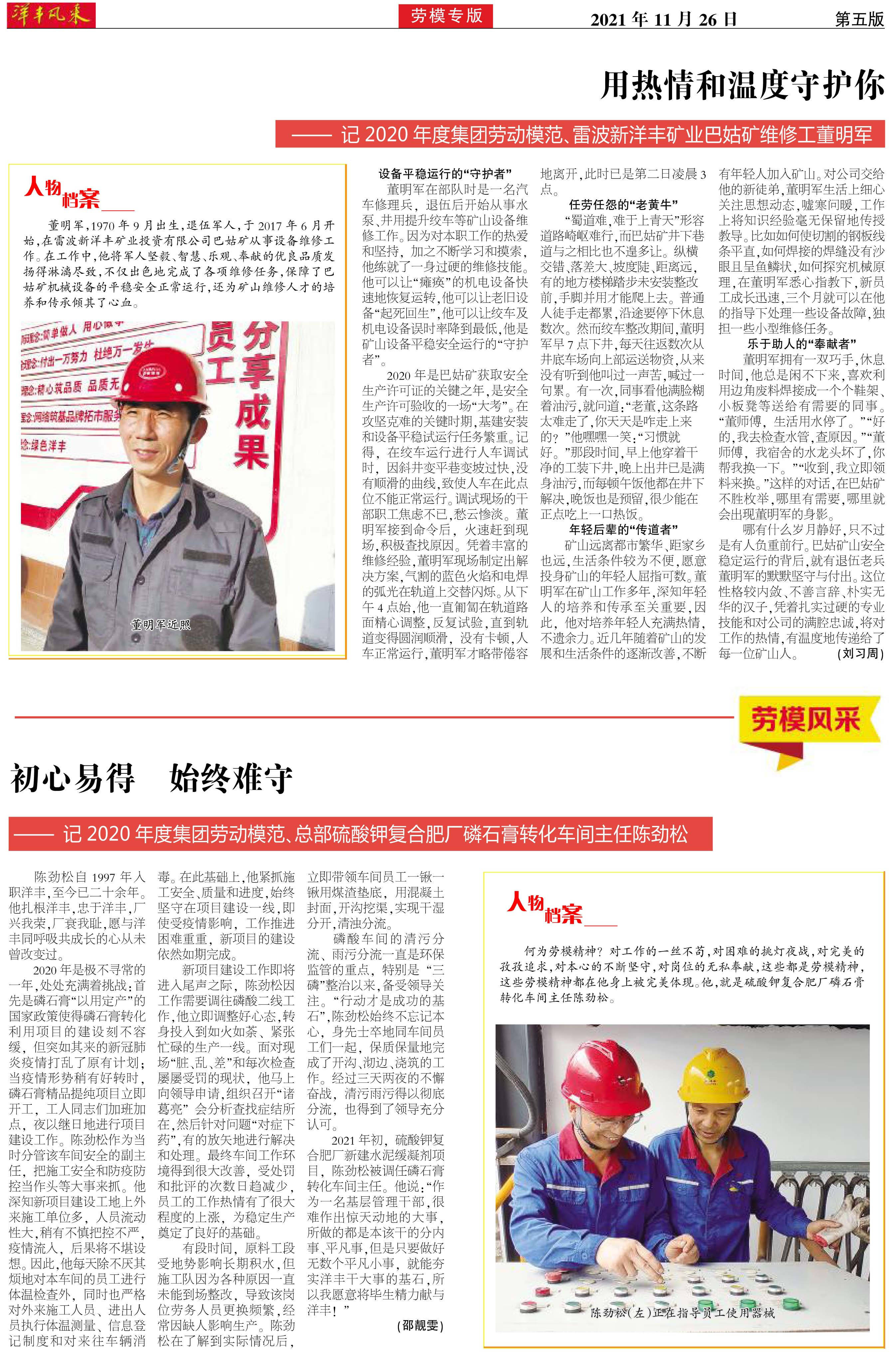 初心易得 始终难守——记2020年度集团劳动模范、总部硫酸钾复合肥厂磷石膏转化车间主任陈劲松