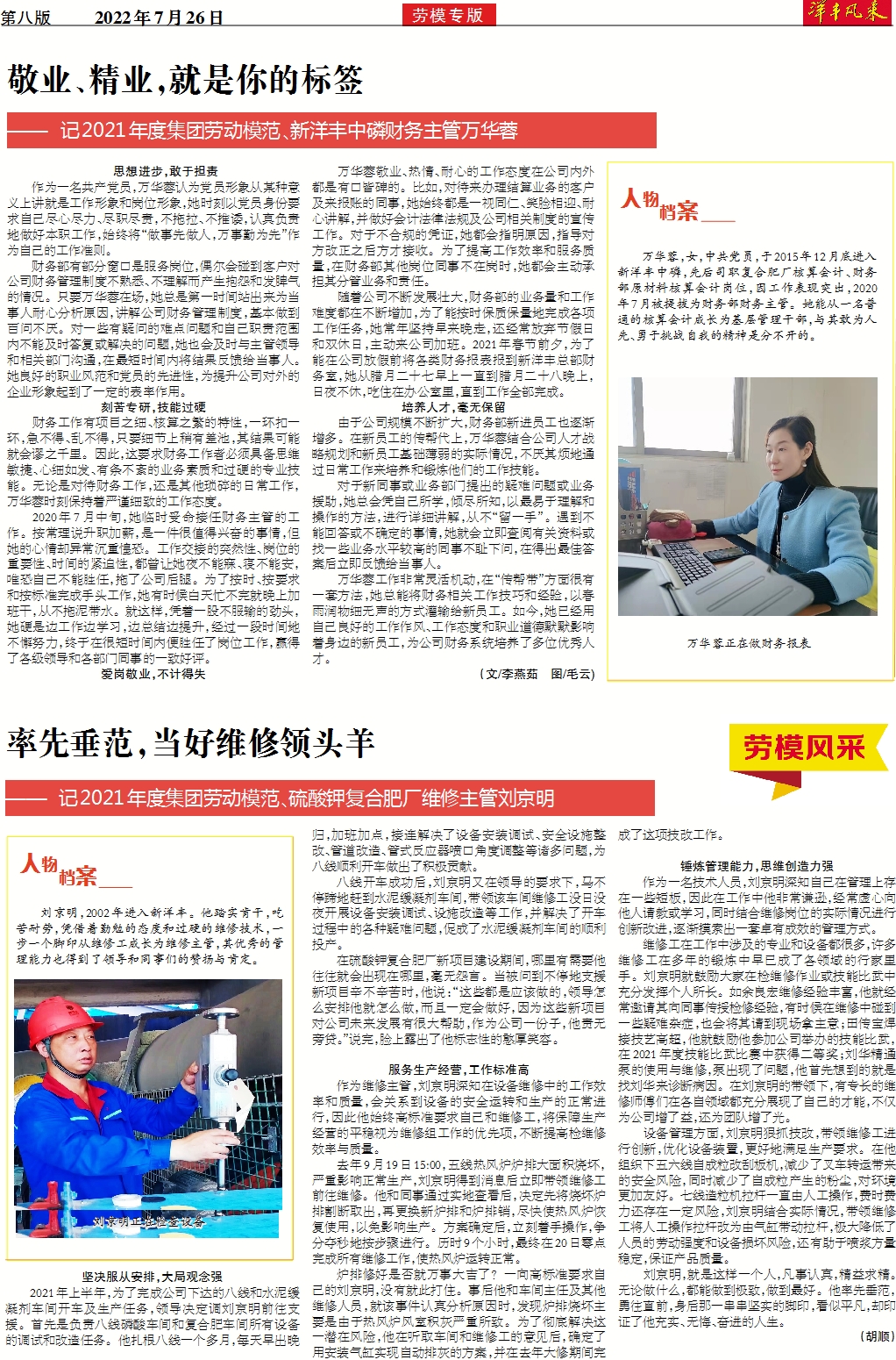 敬业、精业,就是你的标签——记2021年度集团劳动模范、威廉希尔500欧洲指数中磷财务主管万华蓉