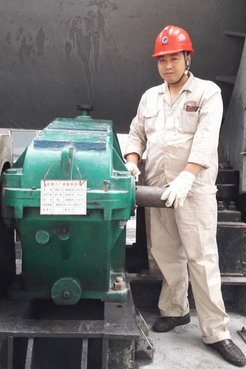高塔二线生产线产能大、设备多,维修工作量大、要求高,对维修班是一项严峻的考验。他一马当先,以实干做表率,带领班组做好设备的日常巡检、维护和保养工作。为此他拟定了详细的工作计划,克服生产时间紧、任务重的问题。危急时刻,他挺身而出,加班加点完成厂区检修工作。今年,高塔二线提升机天轮在运行中突然断裂,提升机被迫停车,面临着旺季生产计划和产量考核的压力,他率领维修班组立即组织抢修,在温度高达40度的车间里不到一个小时就圆满排除了故障,恢复开车。常有人指着他满身的汗水调侃道:“你今天又掉河里了。”他笑了笑,转身又去下一处检修点处理设备故障,他的坚定和执着为高塔二线的生产提供了强有力的保障。