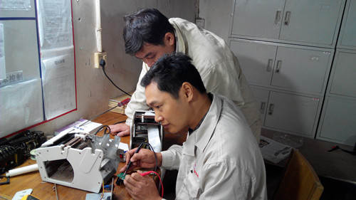张金炎(前)正在检修设备