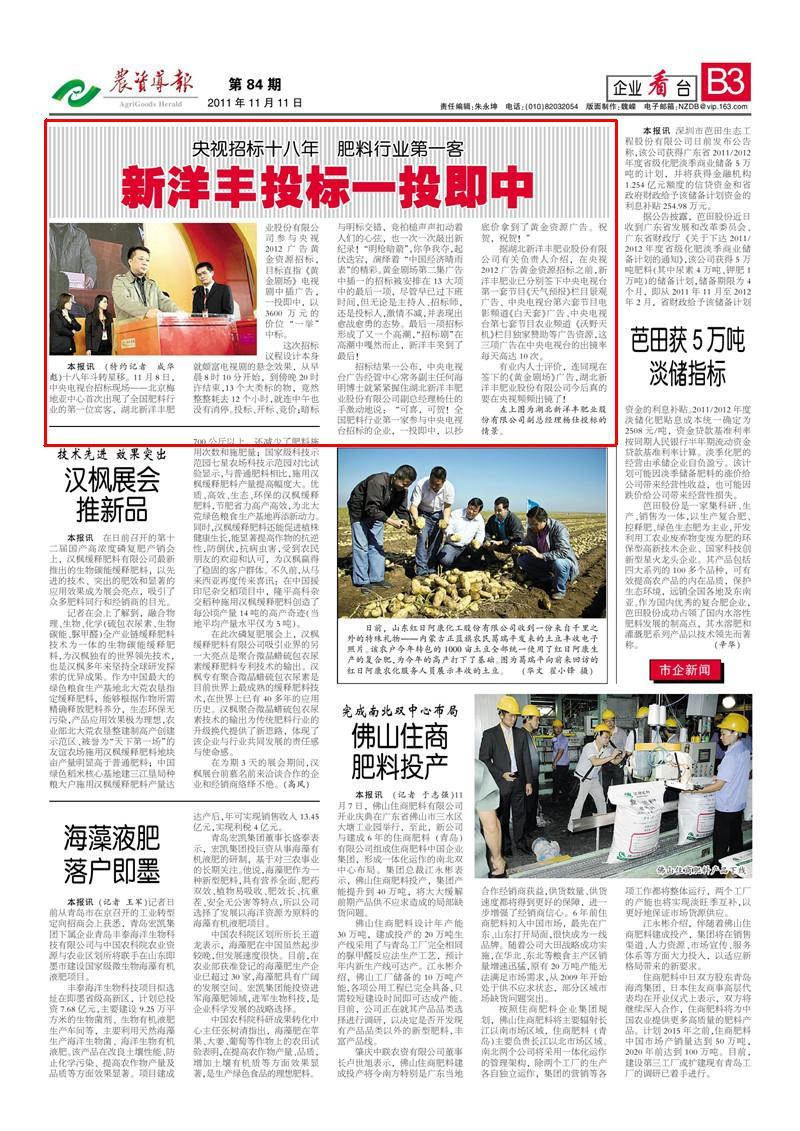 十八年斗转星移。11月8日,中央电视台招标现场--北京梅地亚中心首次出现了全国肥料行业的第一位宾客,湖北威廉希尔500欧洲指数肥业股份有限公司参 与央视2012 广告黄金资源招标,目标直指《黄金剧场》电视剧中插广告,一投即中,以3600万元的价位“一举”中标。