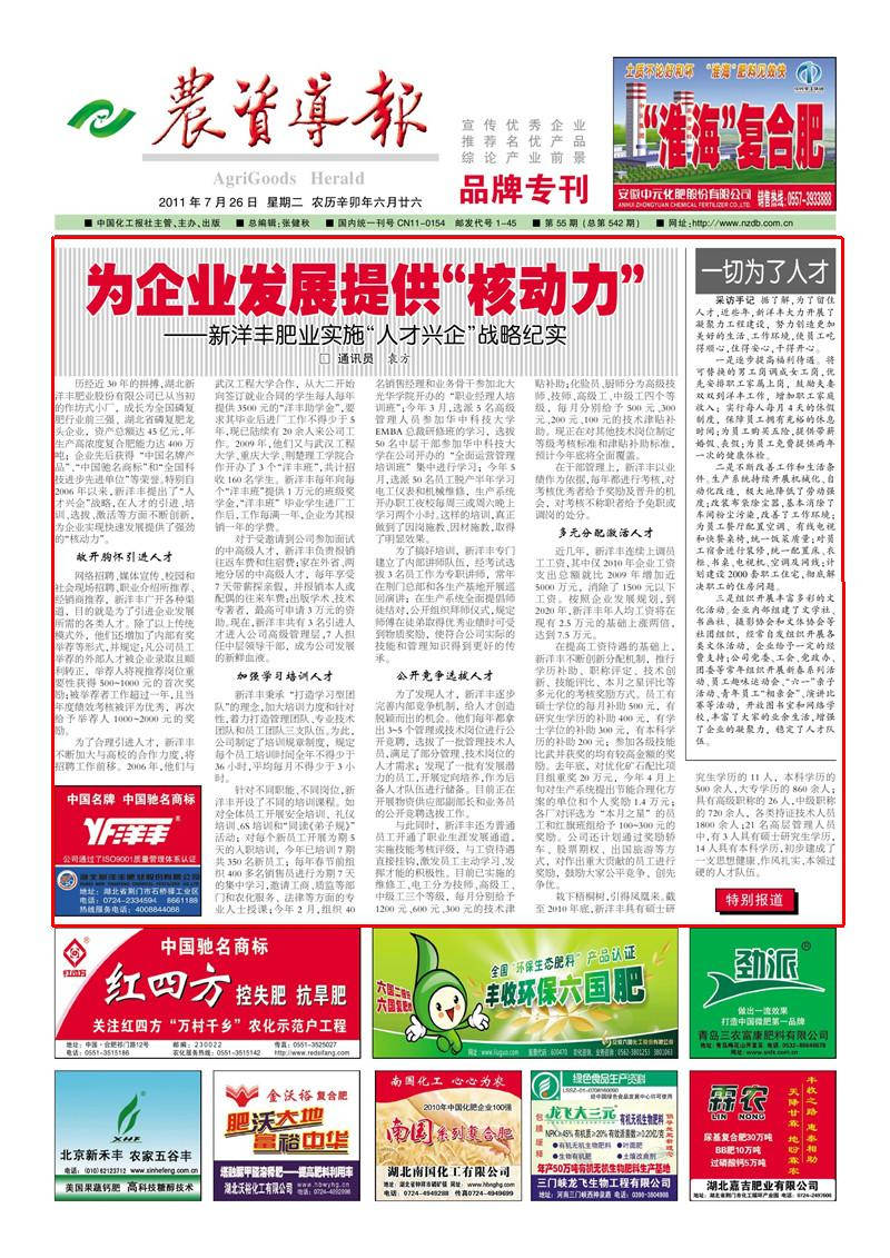 历经近30 年的拼搏,湖北威廉希尔500欧洲指数肥业股份有限公司已从当初的作坊式小厂,成长为全国磷复肥行业前三强、湖北省磷复肥龙头企业,资产总额达45 亿元,年生产高浓度复合肥能力达400万吨;企业先后获得“中国名牌产品”、“中国驰名商标”和“全国科技进步先进单位”等荣誉。特别自2006 年以来,威廉希尔500欧洲指数提出了“人才兴企”战略,在人才的引进、培训、选拔、激活等方面不断创新,为企业实现快速发展提供了强劲的“核动力”。