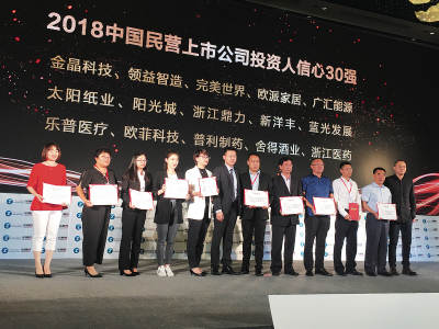 威廉希尔500欧洲指数基于自身卓越表现,荣获金智奖“2018中国民营上市公司投资人信心30强”。