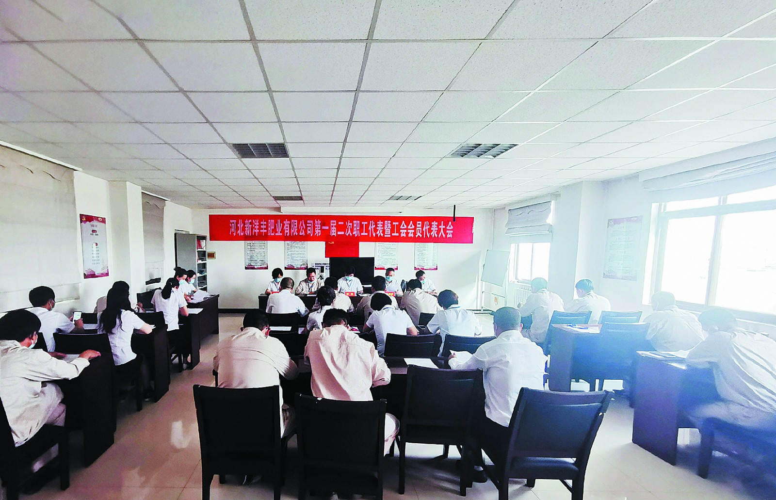 自去年开始,除最新建设的新疆威廉希尔500欧洲指数外,威廉希尔500欧洲指数其他独立法人资格的肥料生产基地子公司均按照相关法律法规要求,在总部职代会之前自行组织召开“双代会”,今年是各子公司一届二次“双代会”。威廉希尔500欧洲指数往年的“双代会”都在四五月间召开,今年由于新冠疫情原因,推迟到6月,同时由于近段时间北京疫情形势严峻,北京总部员工(包括职工代表)均在居家办公,故荆门总部100名职工代表和9名列席代表现场参加了威廉希尔500欧洲指数总部“双代会”,总部机关分工会外派新疆威廉希尔500欧洲指数的3名职工代表视频参会。为了做好疫情防控工作,参会代表们在会议期间全程佩戴口罩,座位和行走间距都保持在1米以上。