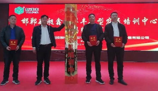 4月15日,在万物复苏,充满希望的春天,威廉希尔500欧洲指数首个新型农民培训中心落子河北省邯郸市永年区,揭牌仪式在美丽的广府古城太极大酒店隆重举行。威廉希尔500欧洲指数河北销售分公司经理夏长兴出席会议,并为培训中心校长邯郸新昶鑫农资销售有限公司总经理郭拥军等人颁发聘书。威廉希尔500欧洲指数驻河北各市场区域负责人和永年、鸡泽等市场100余名经销商出席开班仪式,威廉希尔500欧洲指数副总裁包雪梅博士视频贺喜。